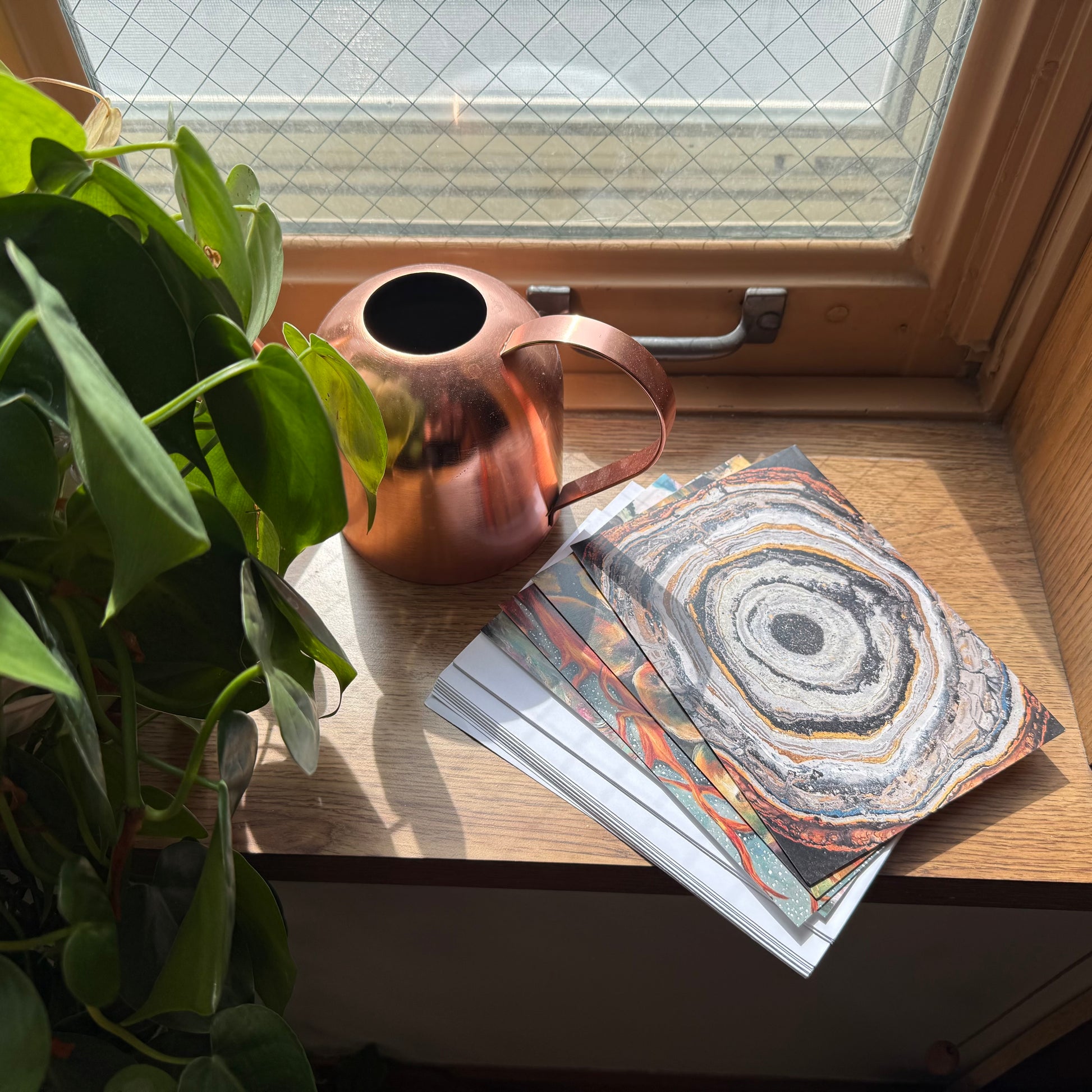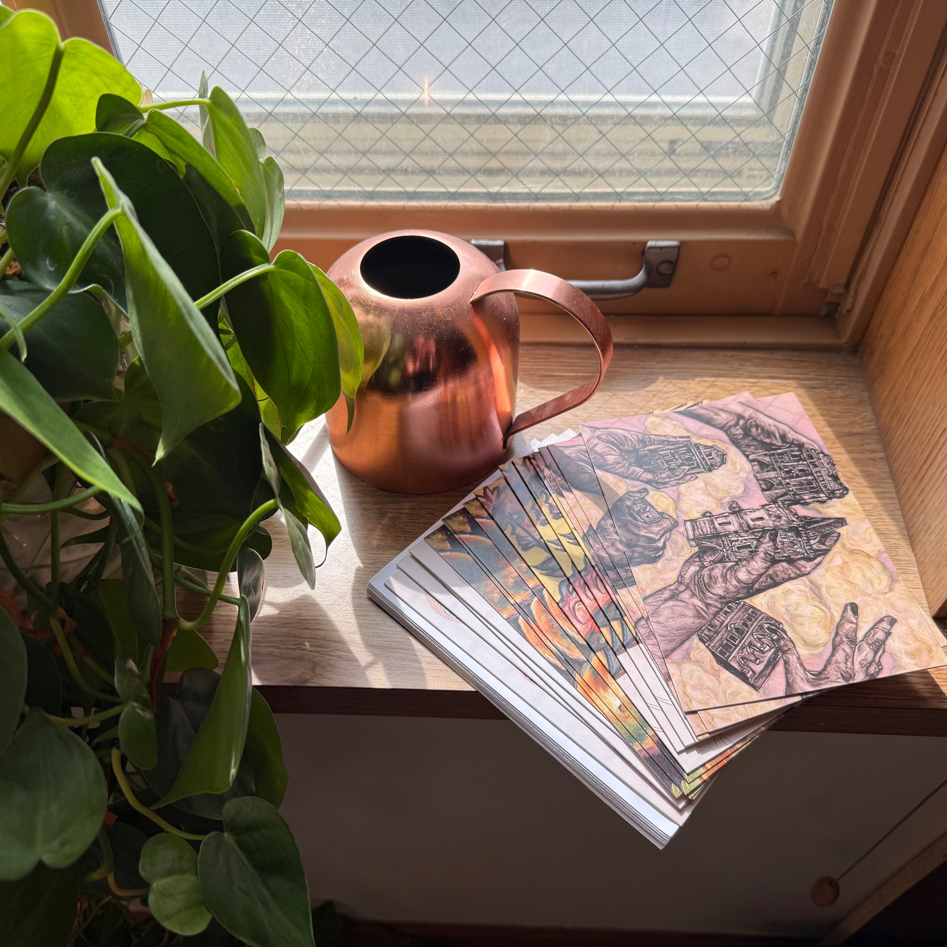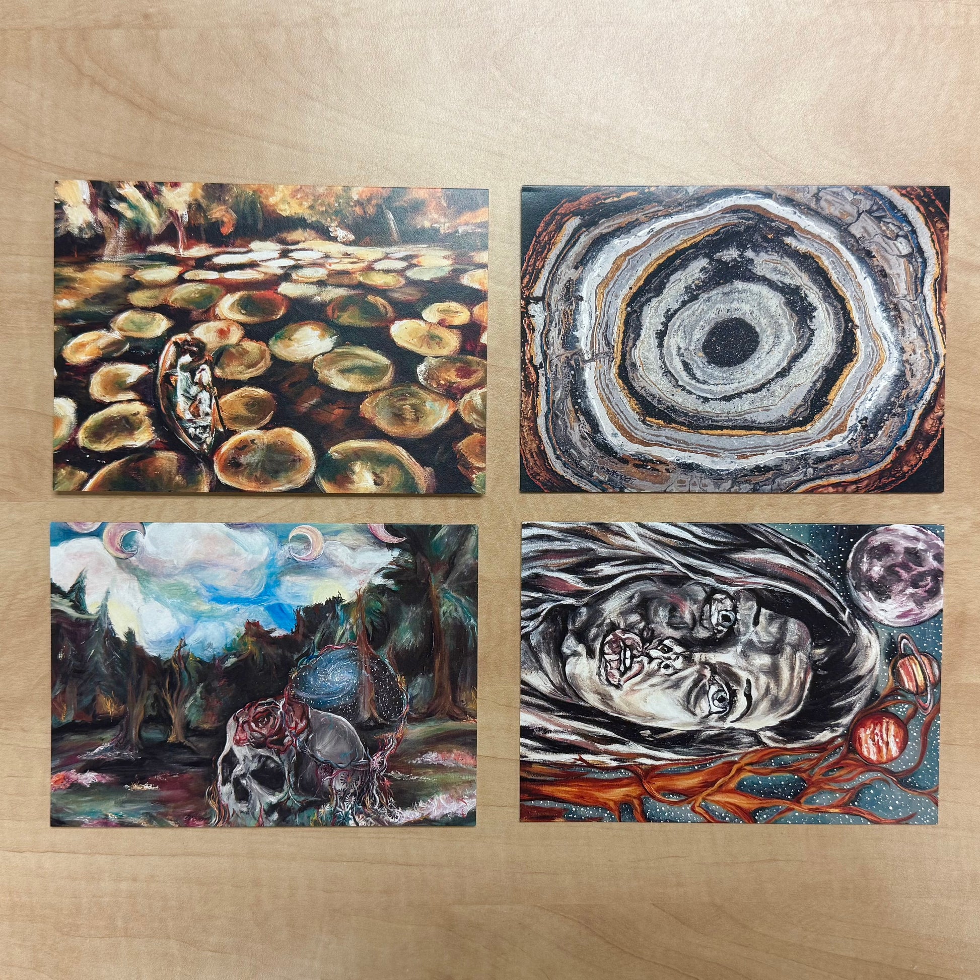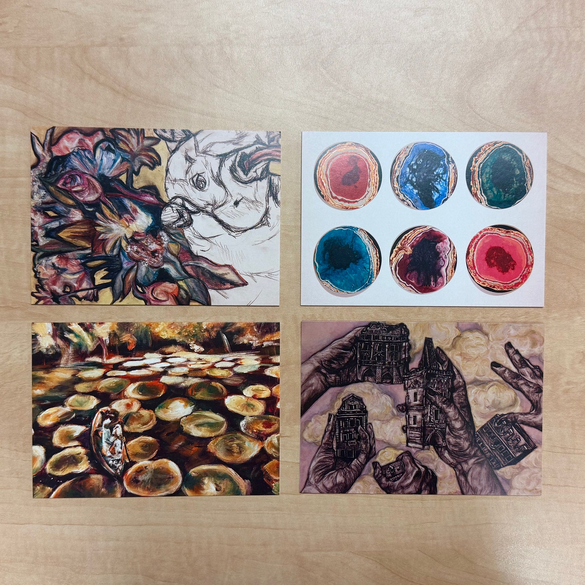 Sixteen cards and envelopes featuring Emily Groth’s designs.